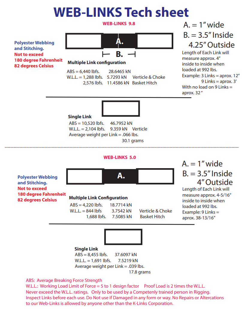 Inspect links before each use. DO NOT use if damaged in any form or way.
